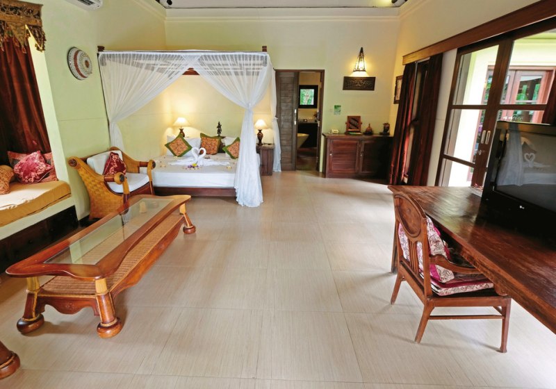 Für unterschiedliche Bedürfnisse stehen Doppel-, Twin- und Familienzimmer zur Verfügung; Zustellbett ist möglich. Es gibt rollstuhlgerechte Zimmer. Einige Einheiten bieten Badewanne oder Meerblick. Kühlschrank, DVD-Player und Bügelset sind teils vorhanden. Der Stil bleibt angenehm reduziert. Highlight: Balkon oder Terrasse verbindet Innenkomfort mit der tropischen Umgebung.