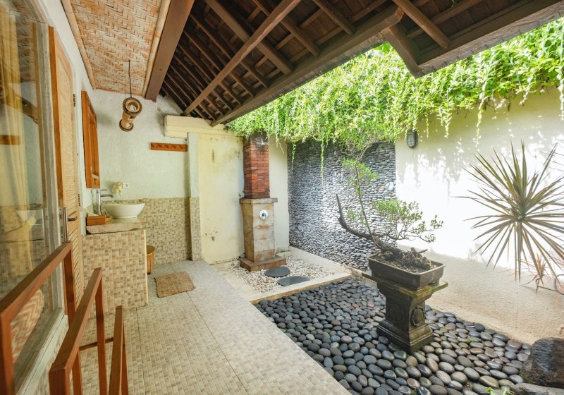 Ihr wohnt im Norden Balis, in Singaraja, nahe der Küste und nur wenige Gehminuten vom Strand entfernt. Restaurants erreicht Ihr fußläufig. Die Fahrt vom Flughafen Ngurah Rai in Denpasar dauert je nach Verkehr etwa 70 bis 90 Minuten. Das Umfeld wirkt entspannt, ohne touristische Hektik.