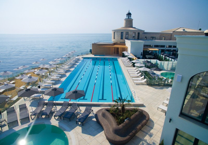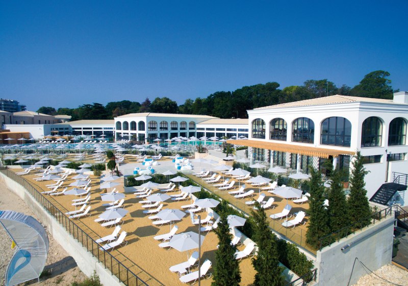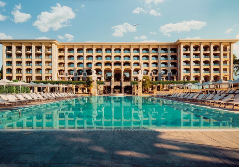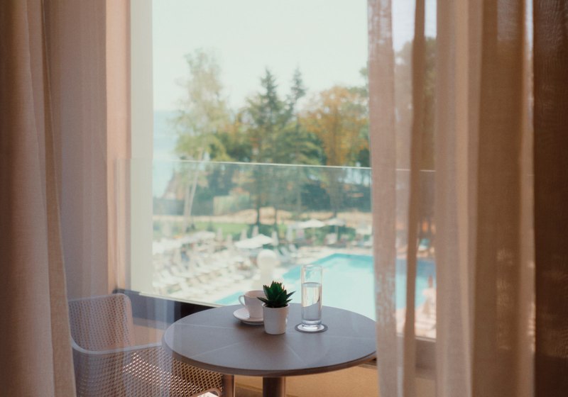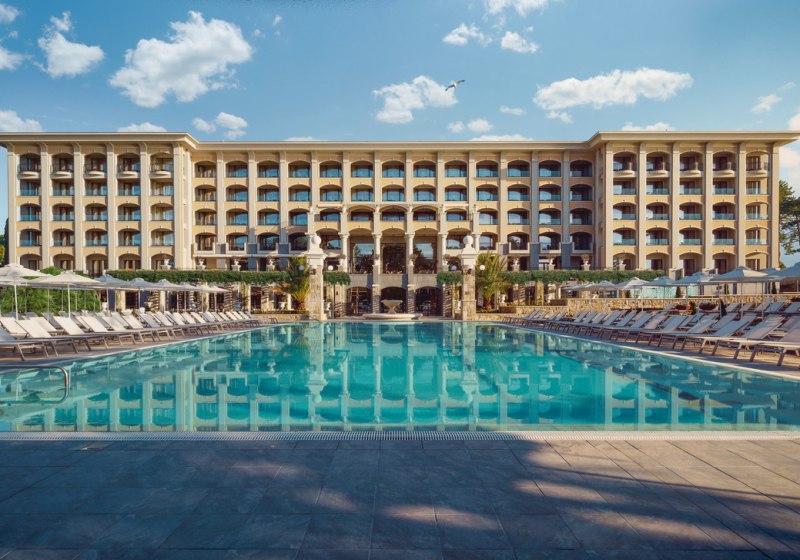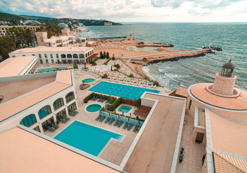 Astor Garden Hotel empfängt Euch in Sveti Konstantin mit der Ruhe eines 5-Sterne-Strandhotels und der Bequemlichkeit kurzer Wege. In 50 Metern erreicht Ihr den Sandstrand, am Hotel erwartet Euch ein Ensemble aus Außen- und Hallenbad, Garten und sonnigen Terrassen. Die öffentlichen Bereiche wirken aufgeräumt, gut strukturiert und funktional, vom großzügigen Empfang bis zu Lounge-Zonen mit Bar und Café. Highlight: 5-Sterne-Strandhotel mit kurzer Stranddistanz und klarer Struktur.