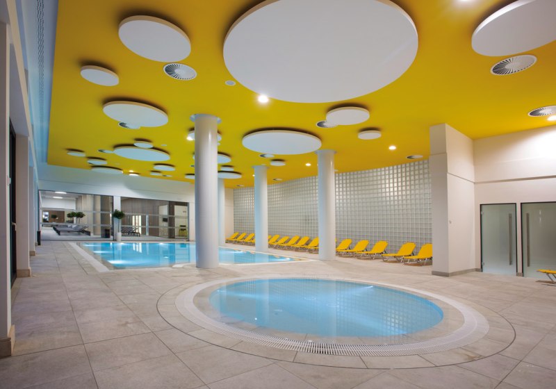 • Poolvielfalt: Außenpool, Hallenbad und Kinderpool in kompakter Anordnung.