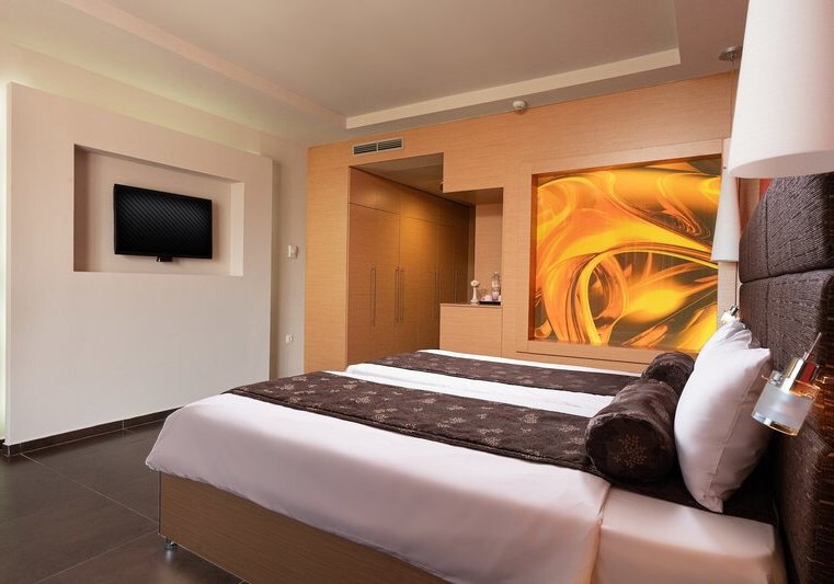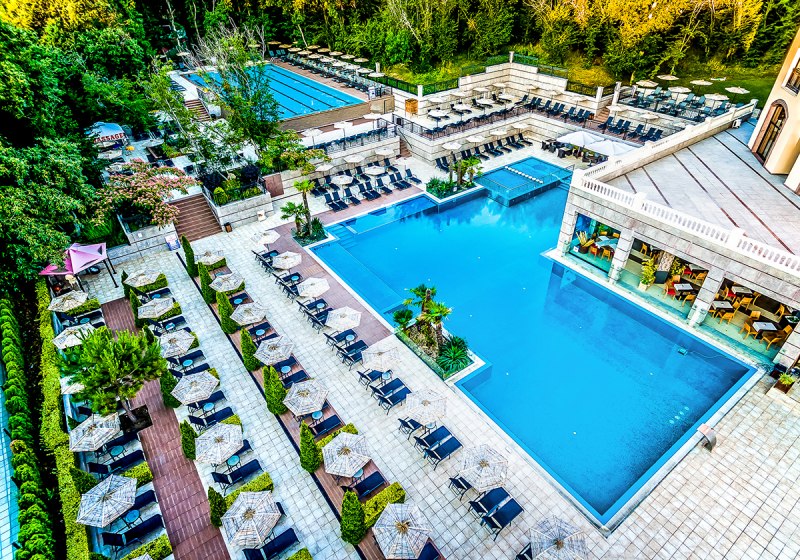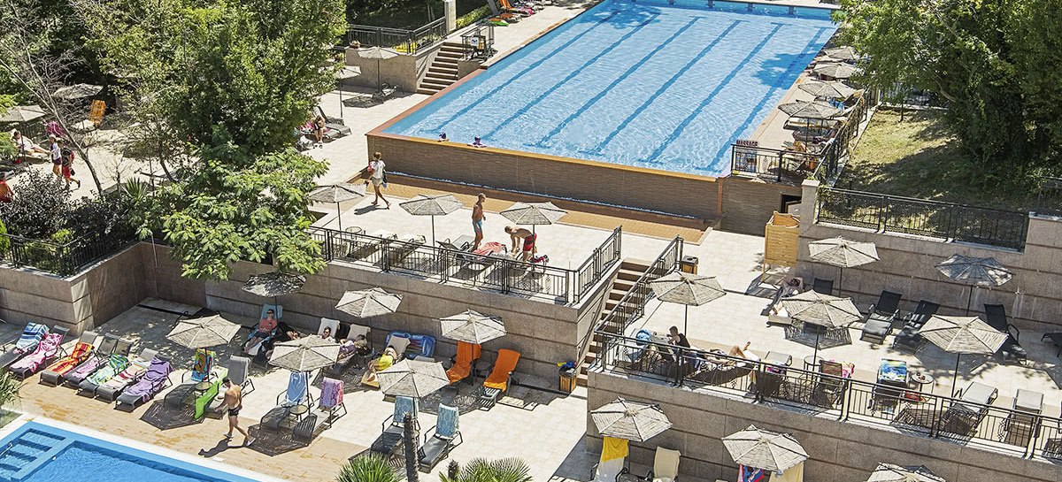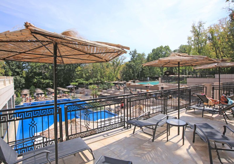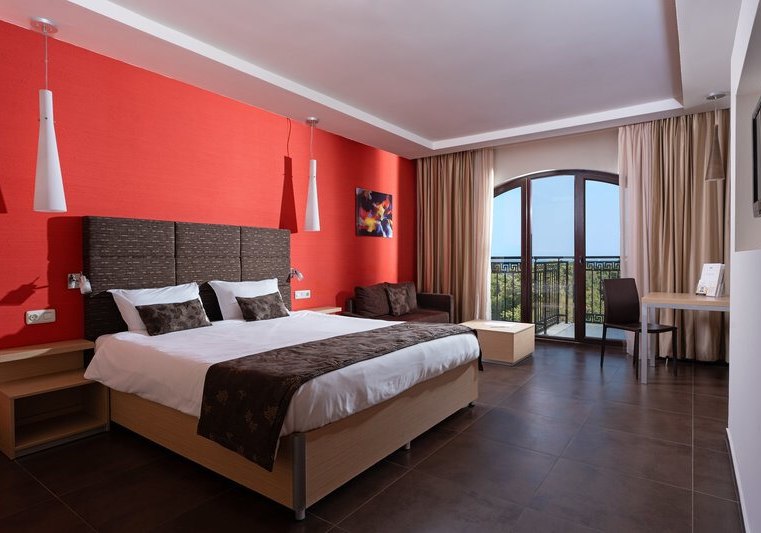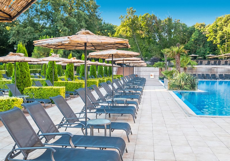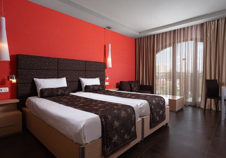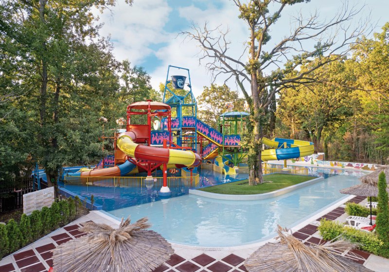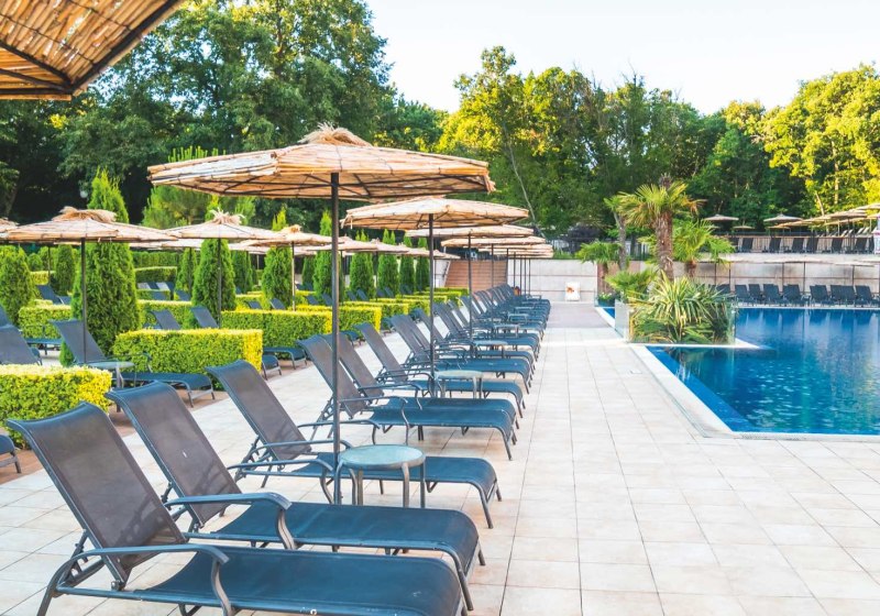 Familien finden Platz in Appartements, Badefans den hoteleigenen Strandabschnitt in rund einem Kilometer Entfernung – bequem per Shuttleservice erreichbar. Kulinarisch erwartet Euch ein Hauptrestaurant und zwei Themenrestaurants mit bulgarischer und griechischer Küche, ergänzt von Bars, Pool-Snackbar und Beachbar. Das Spa-Center mit Sauna, Dampfbad und Whirlpool sowie ein Hallenbad schaffen ruhige Momente. Animation, Abendshows und Live-Musik sorgen für Abwechslung, ohne den entspannten Fluss zu stören.