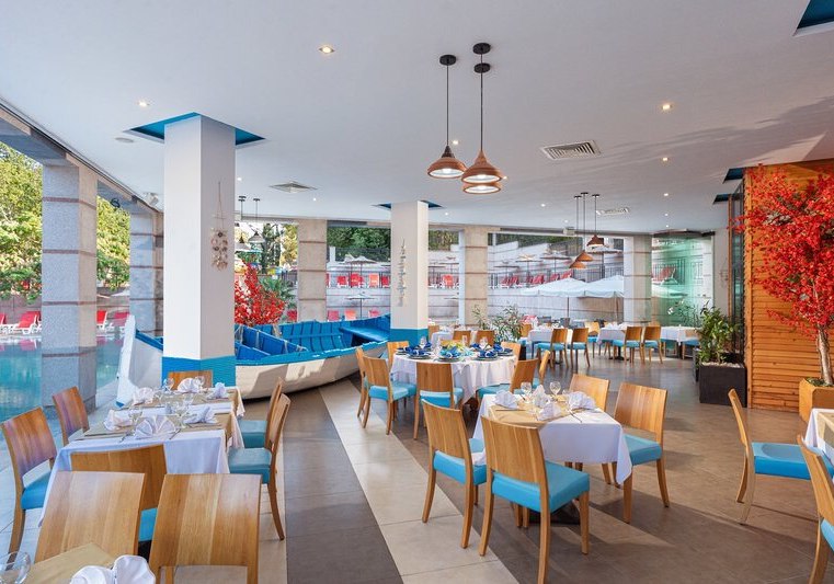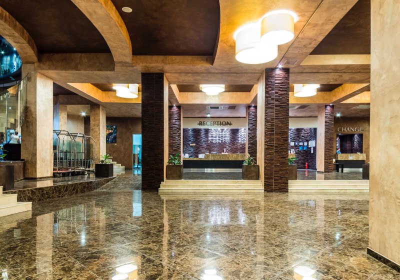 Das Haus bietet 296 Zimmer über acht Etagen, eine Empfangshalle mit Rezeption und WLAN im gesamten Hotel. Zwei Außenpools, Kinderbecken und Hallenbad verteilen die Badezeiten sinnvoll. Auf der Sonnenterrasse stehen Liegen und Schirme bereit; am Strand sind Liegen und Schirme ebenfalls vorhanden. Handtücher erhaltet Ihr gegen Kaution, ebenso Strandtaschen. Babybetten sind nach Verfügbarkeit möglich.