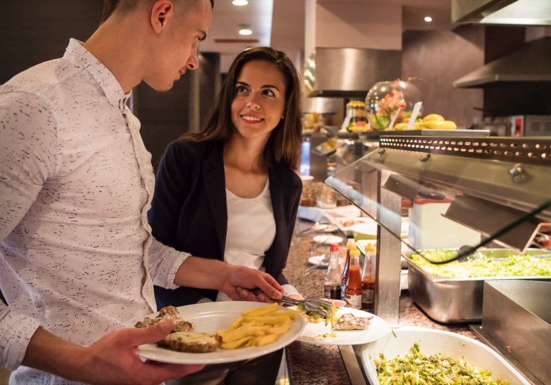 - Live-Kochen: Frische Zubereitung am Buffet bringt Tempo und klare Auswahl.