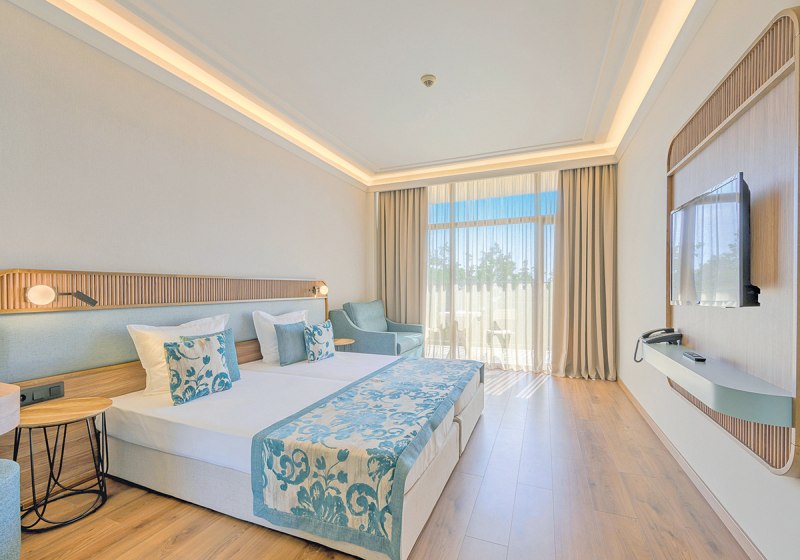 • Klimaanlage • Balkon (je nach Zimmerkategorie) • Haartrockner • Minikühlschrank • Safe (gegen Gebühr) • Meerblick (je nach Zimmerkategorie: seitlich) • Kaffee-/Teezubereiter • Fernseher • rollstuhlgerechte Zimmer (auf Anfrage) • WiFi (kostenfrei) • Etagenbett • Kühlschrank • Minibar • Schlafsofa