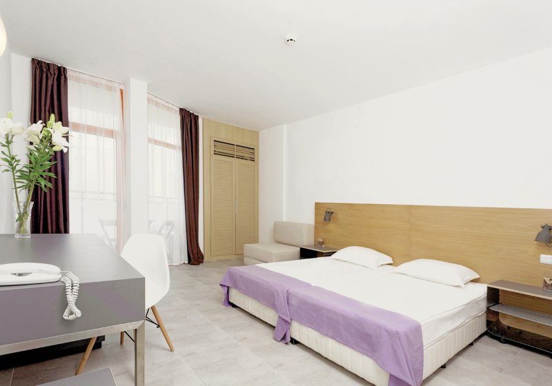 • Klimaanlage • Balkon (je nach Zimmerkategorie) • Kühlschrank • Haartrockner • Minikühlschrank • Minibar • Safe • Meerblick (je nach Zimmerkategorie) • Schlafsofa • Kaffee-/Teezubereiter • Terrasse • Fernseher • WiFi (kostenfrei)