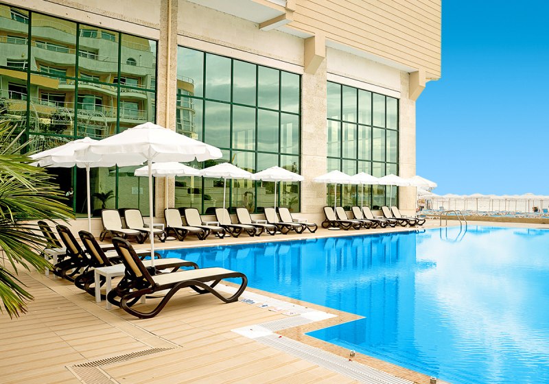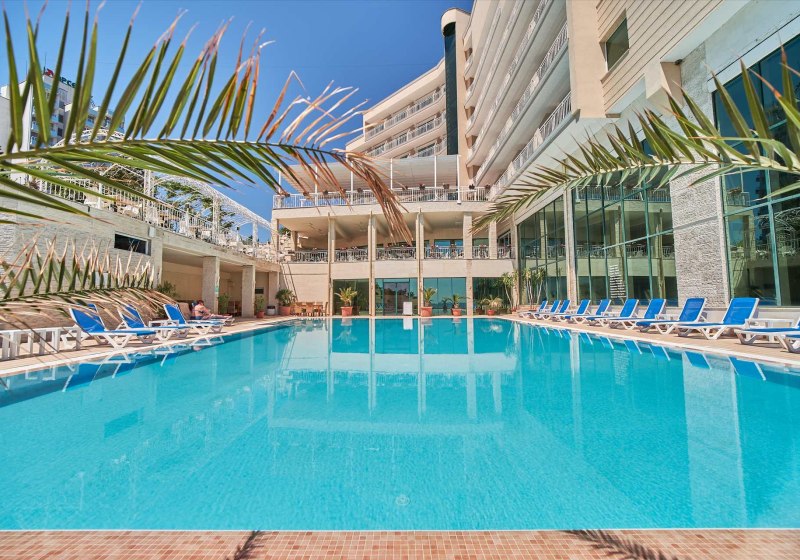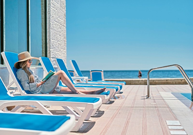 Adults-only ab 16 Jahren, 137 Zimmer auf acht Etagen, Aufzüge und eine Rezeption als klare Anlaufstelle – das Bilyana Beach Hotel ist strukturiert und übersichtlich. WLAN in Lobby und Zimmern hält Euch verbunden, ein Safe im Zimmer oder an der Rezeption sorgt für Unbeschwertheit. Am Pool wartet eine Sonnenterrasse mit bereitstehenden Badetüchern.