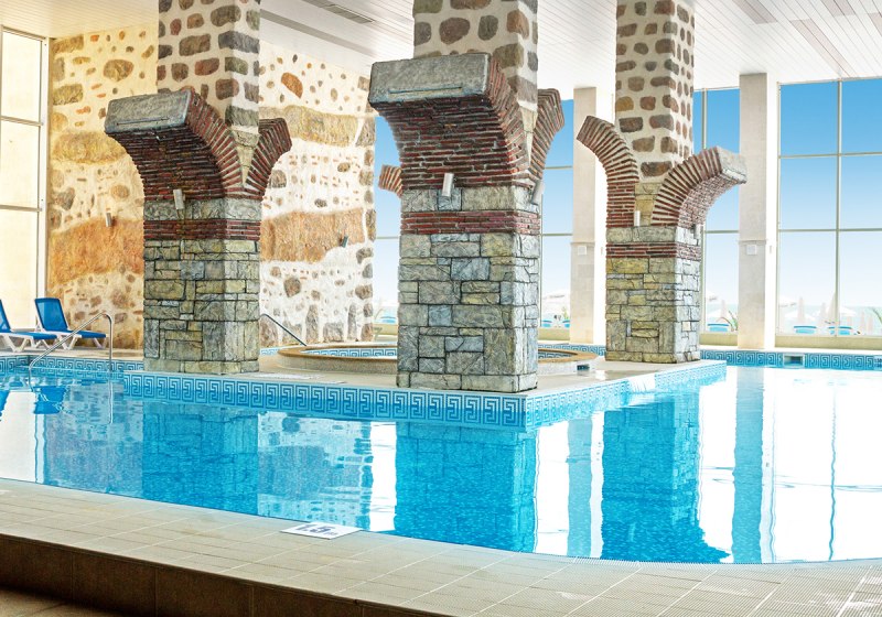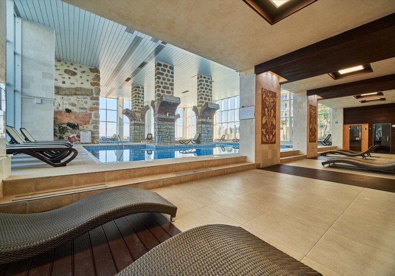 Wenn das Wetter dreht oder Ihr Abwechslung vom Strand sucht, wechselt Ihr in den Spa-Bereich. Das beheizbare Hallenbad macht den Sprung ins Wasser unabhängig von der Jahreszeit. Es ist der ruhige Gegenpol zum Außenpool und eine verlässliche Option für kontinuierliche Bahnen.