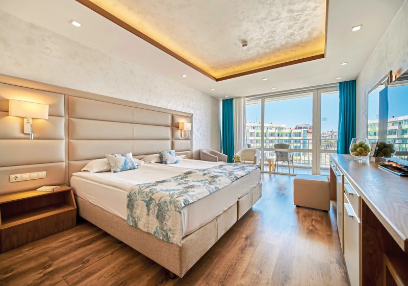• Klimaanlage • Balkon (je nach Zimmerkategorie) • Kühlschrank • Haartrockner • Sitzecke (je nach Zimmerkategorie) • Minikühlschrank • Minibar • Telefon • Safe • Meerblick (je nach Zimmerkategorie) • Kaffee-/Teezubereiter • Terrasse • Fernseher (Sat-TV) • rollstuhlgerechte Zimmer (auf Anfrage) • WiFi (kostenfrei) • Balkon oder Terrasse • Landblick • Poolblick • Schallisolation • Pool (privat) • Steckdose • Holz/Parkett