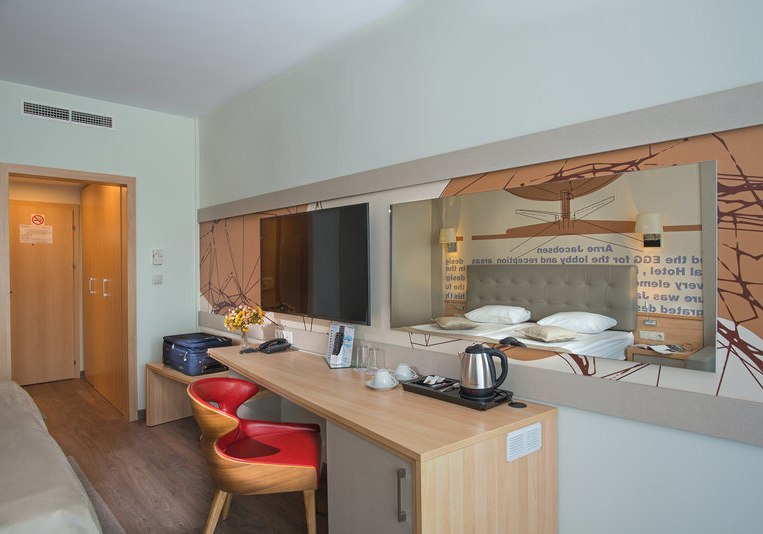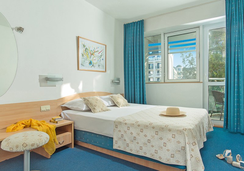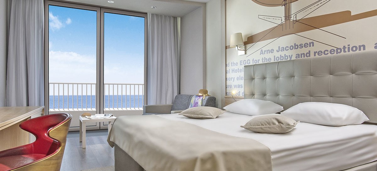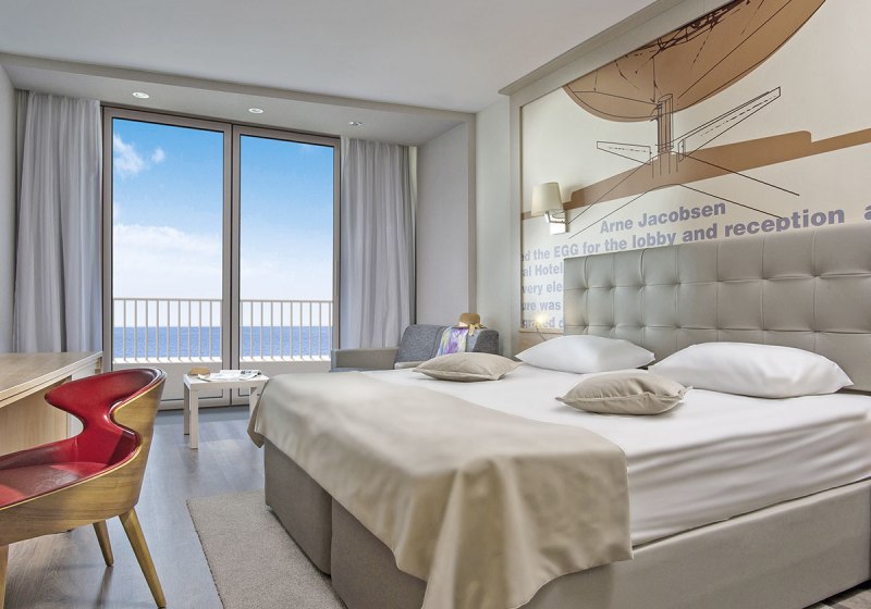 Die Zimmer sind funktional ausgestattet: Klimaanlage, Safe, Sat-TV, Telefon sowie Dusche und WC bilden die Basis. Ein Balkon gehört dazu, einige Kategorien bieten Schlafsofa oder ausziehbaren Sessel. Die Minibar wird mit Wasser, Bier und Softdrinks bestückt, ausgewählte Zimmer verfügen über einen Wasserkocher.