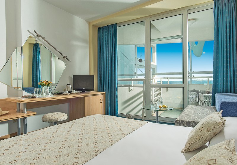 • Klimaanlage • Balkon (je nach Zimmerkategorie) • Haartrockner • Sitzecke (je nach Zimmerkategorie) • Minibar • Safe • Schlafsofa • Kaffee-/Teezubereiter • Fernseher (Sat-TV) • rollstuhlgerechte Zimmer (auf Anfrage) • WiFi (kostenfrei) • Stadtblick • Strandblick (seitlich) • Wasserkocher • Terrasse