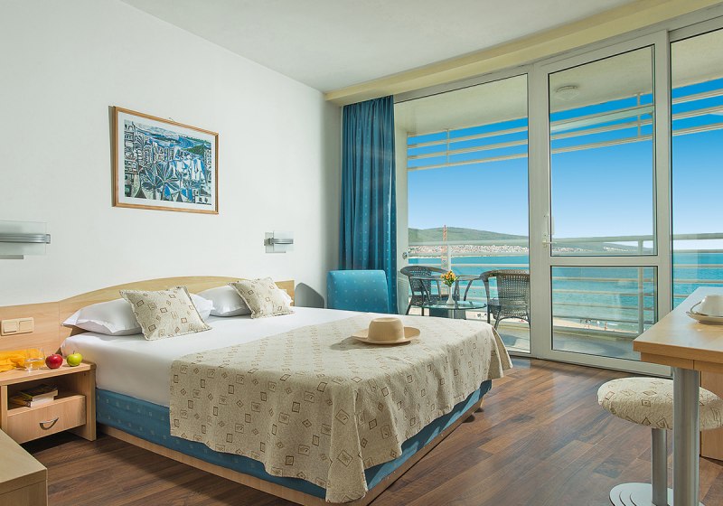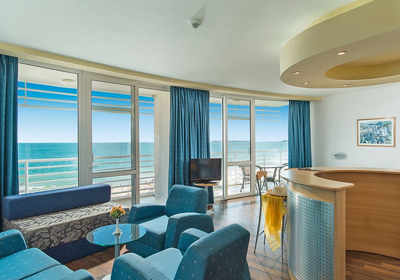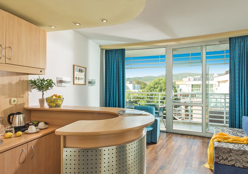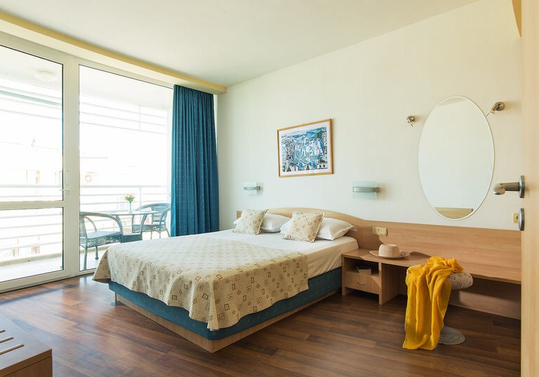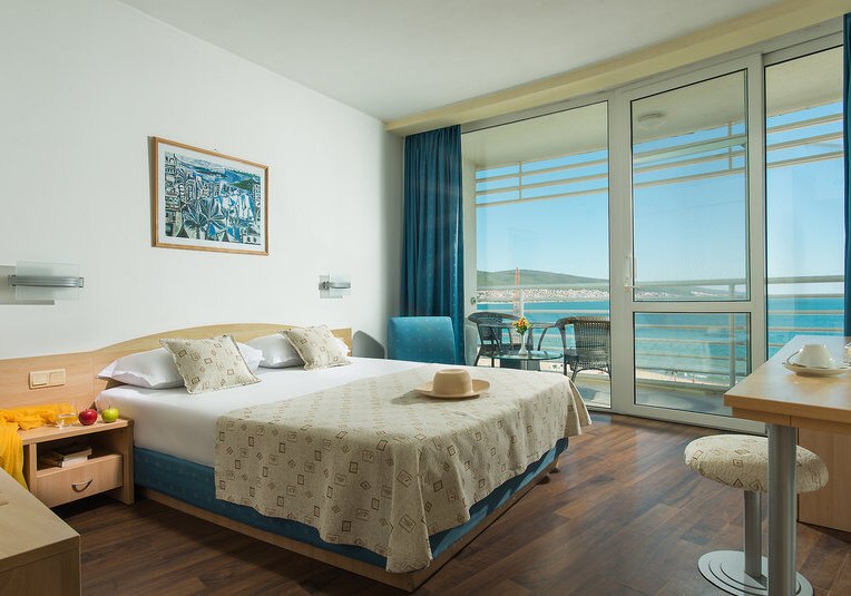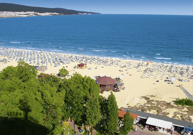 Ihr wohnt im nördlichen Abschnitt von Sonnenstrand, nur durch die Uferpromenade vom feinsandigen Strand getrennt. Zum Meer sind es rund 30 Meter, sodass Ihr Handtuch und Sonnencreme einfach mitnehmt und direkt loslegt. Die Atmosphäre ist strandnah und lebendig, ohne weite Wege.