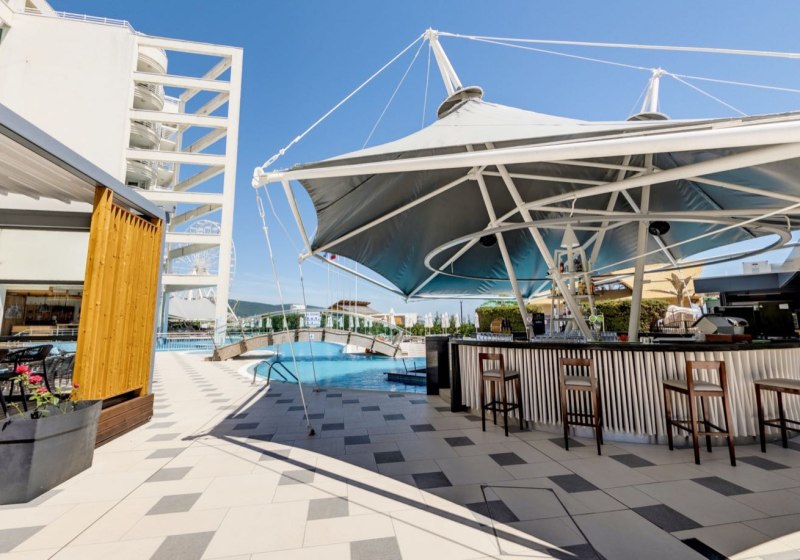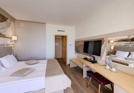 Im Effect Grand Victoria Hotel wohnt Ihr im Nordbereich von Sonnenstrand, nur durch die Uferpromenade vom Sandstrand getrennt. Das Haus wirkt lebendig und entspannt zugleich: Außenpool, Kinderbecken und weitläufige Sonnenterrassen strukturieren Euren Tag, während Bars und Lounge-Bereiche Raum für ruhige Momente bieten.