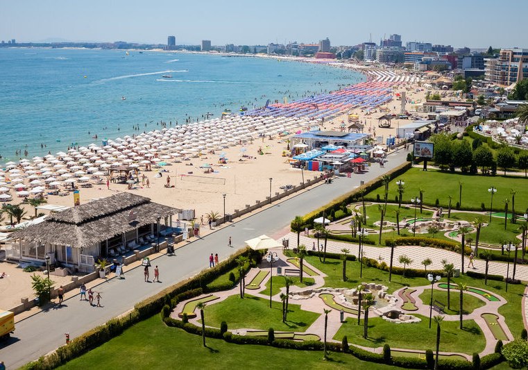 Direkt am Sonnenstrand von Bulgarien gelegen, verbindet DIT Majestic Beach Resort Badeleben und bequeme Anbindung: Eine Uferpromenade trennt die Anlage vom Strand, sodass Ihr in wenigen Schritten am Wasser seid. Am Strand stehen Liegestühle und Sonnenschirme bereit. Das Zentrum von Sonnenstrand erreicht Ihr nach etwa 3 Kilometern, was Ausflüge zu Bars, Läden und Unterhaltung leicht macht. Der Flughafen Burgas liegt rund 30 Kilometer entfernt, praktisch für eine zügige An- und Abreise. Die Umgebung wirkt lebhaft, ohne die Ruhe am Pool zu stören. Dank klarer Wege zwischen Strand, Pools und Restaurants bewegt Ihr Euch intuitiv durch das Resort. Die Strandlage bildet das Rückgrat des Aufenthalts: morgens an die Promenade, tagsüber ins Meer, abends bequem zurück in die Anlage – einfach, übersichtlich, strandnah.