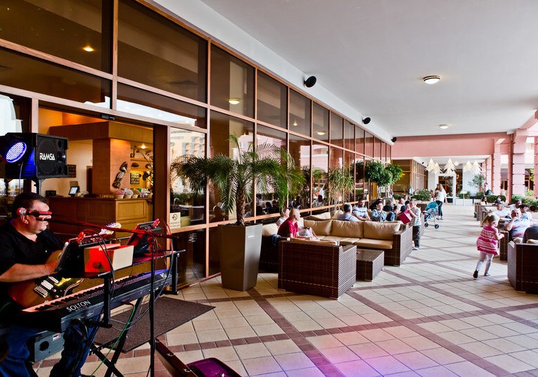 Für Events stehen drei Konferenzräume mit bis zu 400 Plätzen bereit. Sechs Aufzüge erleichtern die Wege, ein Parkplatz (bis 80 Plätze) sowie Mietwagenverleih erhöhen die Mobilität. Medizinische Betreuung ist vor Ort, abends lockt ein Nachtclub. Spielplätze und ein Spielzimmer runden das Familienangebot ab. Die Anlage wirkt strukturiert, umfangreich und funktional. Highlight: Zwei Außenpools mit großen Liegebereichen und Sonneninseln.