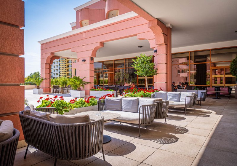 DIT Majestic Beach Resort liegt am Sonnenstrand und grenzt über eine Uferpromenade an den feinsandigen Strand. Die Anlage präsentiert sich weitläufig mit zwei Außenpools, Sonnenterrassen und vielen Plätzen zum Verweilen. Familien freut die Kombination aus Kinderpool, Spielplätzen und Miniclub, während Ihr an der Poolbar oder in der Lobbybar entspannt. Die öffentliche Bereiche wirken lebendig: Café, Beer Corner, Snackbar und kleine Geschäfte geben dem Haus den Charakter eines kompletten Resorts.
