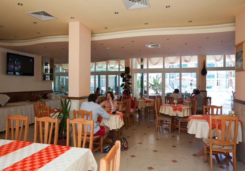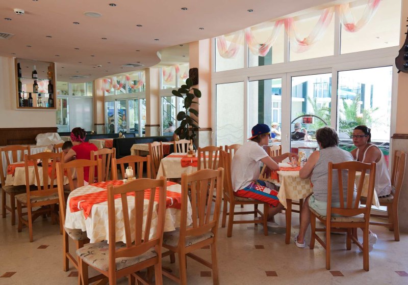 Zwischen Pool und Sonnenterrasse versorgt Euch die Poolbar mit Erfrischungen. Für spontane Kleinigkeiten oder Familienbedarf liegt ein Supermarkt direkt auf dem Gelände. In fußläufiger Umgebung findet Ihr zusätzliche Restaurants und Bars, wenn Ihr Abwechslung sucht oder den Abend außerhalb verbringt. Highlight: Hauptrestaurant und Poolbar decken den ganzen Tag pragmatisch ab.