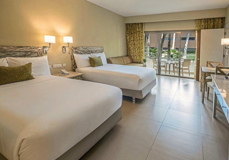 Eure Zimmer starten bei etwa 38 m und bieten Bad mit Haartrockner, Klimaanlage, Safe, Minibar, TV, Wecker, Spiegel sowie B gelset und Kaffee- bzw. Teezubereiter. WLAN und Telefon gehren dazu. Auf dem Balkon oder der Terrasse stehen Tisch und Sthle, teils mit Gartenblick. Ihr whlt zwischen zwei Queensize-Betten oder einem Kingsize-Bett.