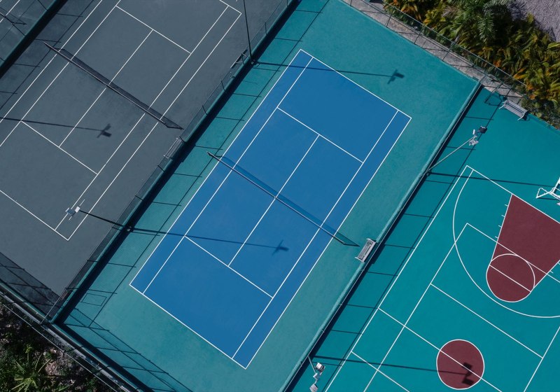 - Court-Vielfalt: Tennis, Squash, Basketball und Beachvolleyball strukturieren Aktivitt.