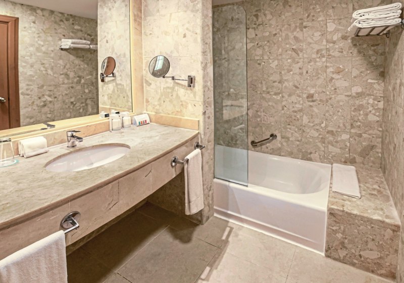 Aus 427 Zimmern wählt Ihr zwischen Doppelzimmern, Familienzimmern sowie Junior- und Suiten – jeweils mit Balkon oder Terrasse. Die Ausstattung ist auf Komfort im Tropenklima ausgerichtet: Klimaanlage, Ventilator, Safe und Minibar, dazu TV und kostenloses WLAN. Badezimmer mit Dusche und Badewanne bieten praktische Flexibilität.
