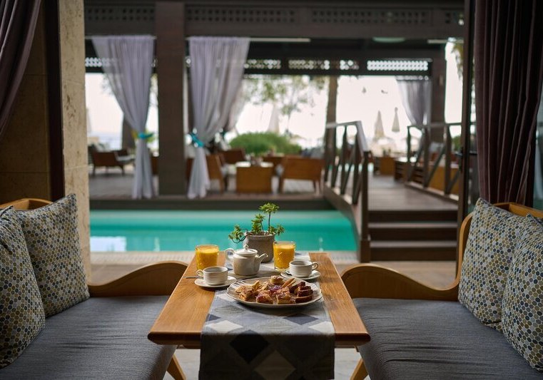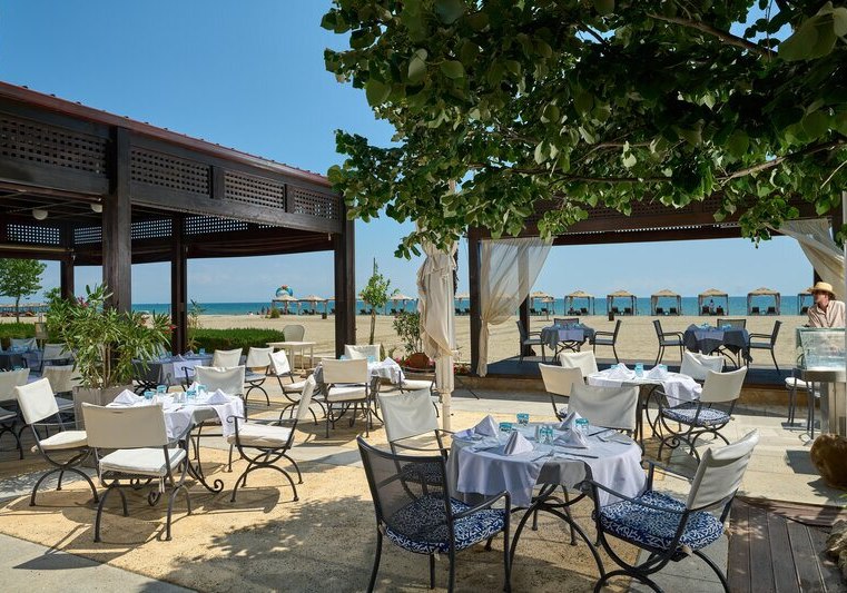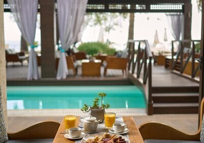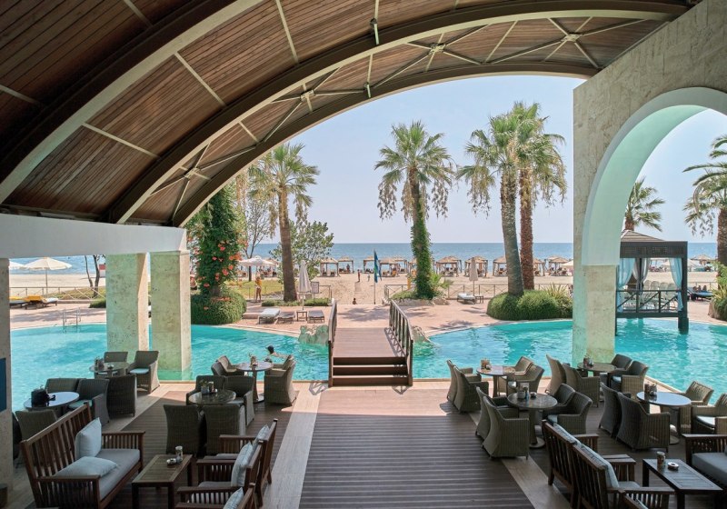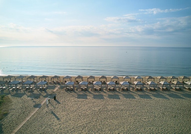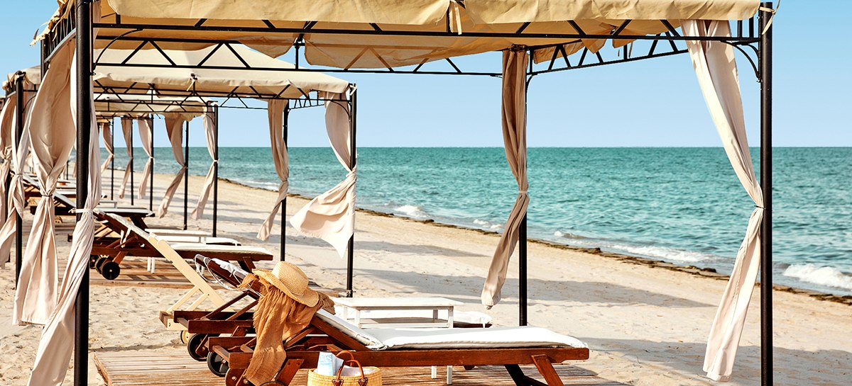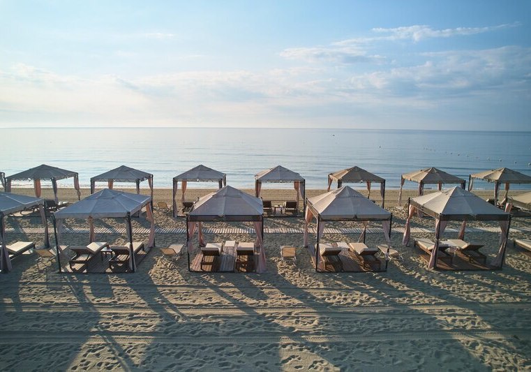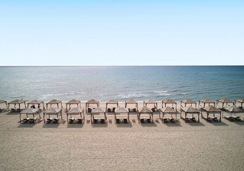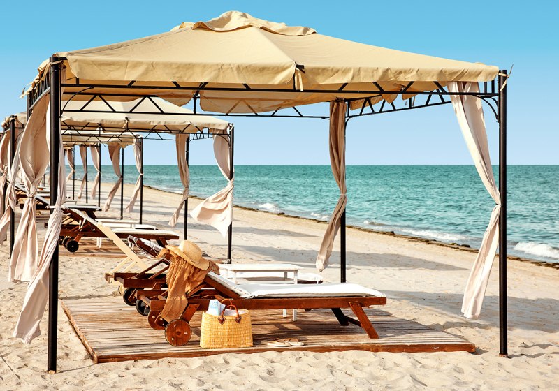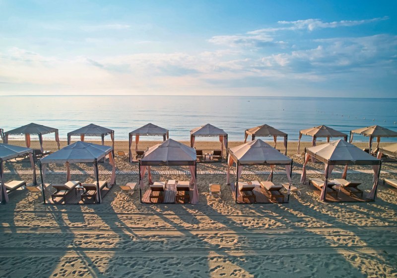 - Am Strand: Liegen, Schirme und buchbare Pavillons direkt am Sand.