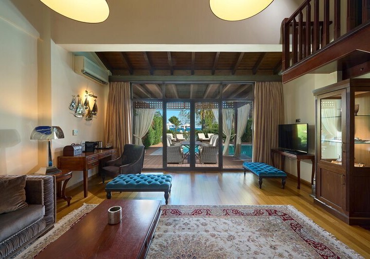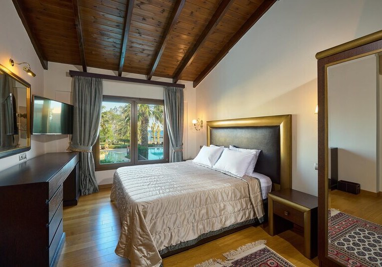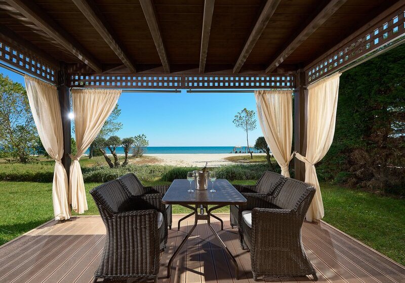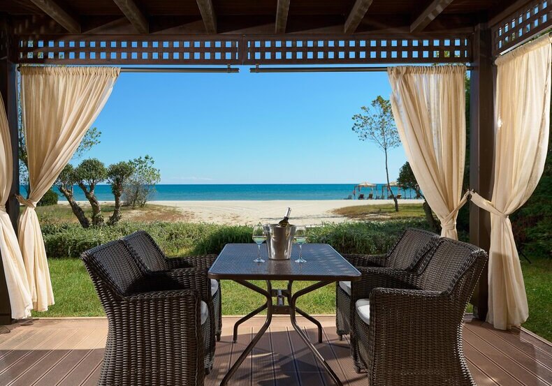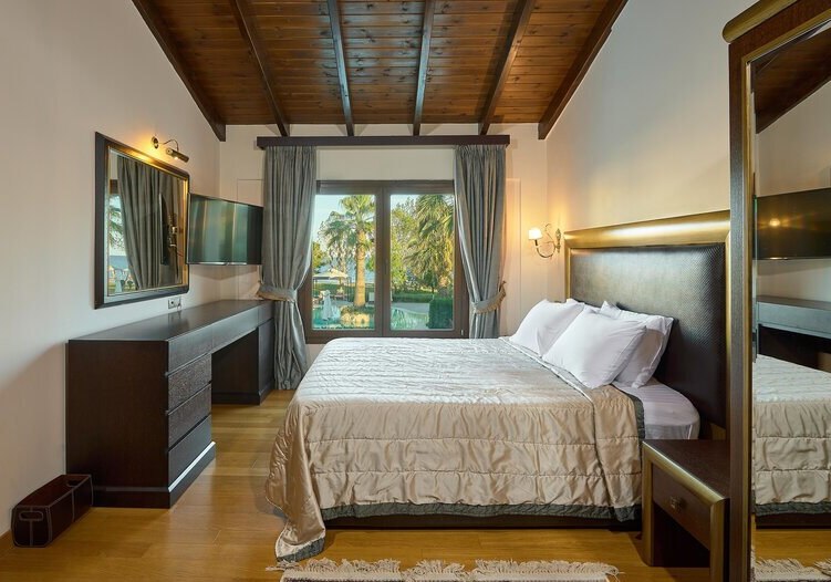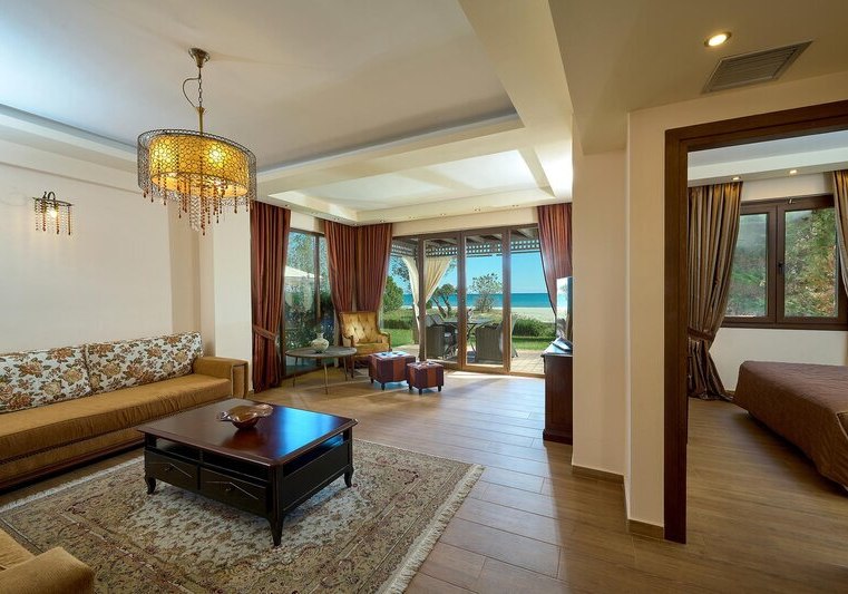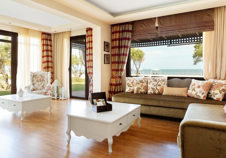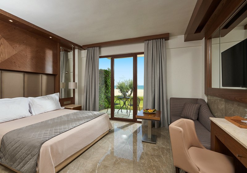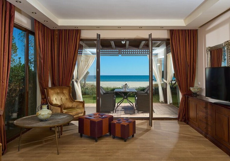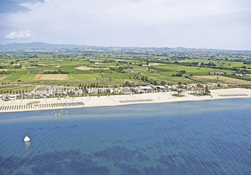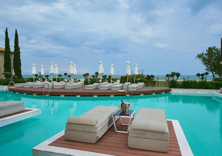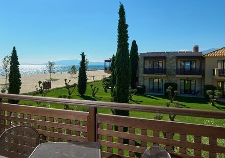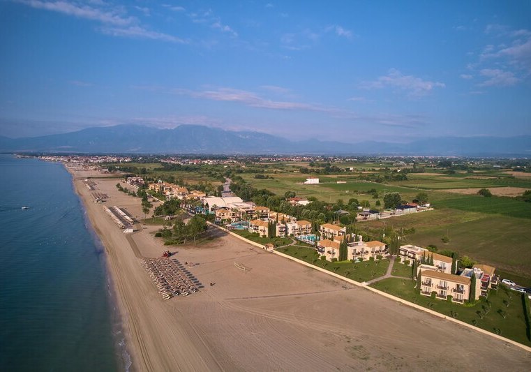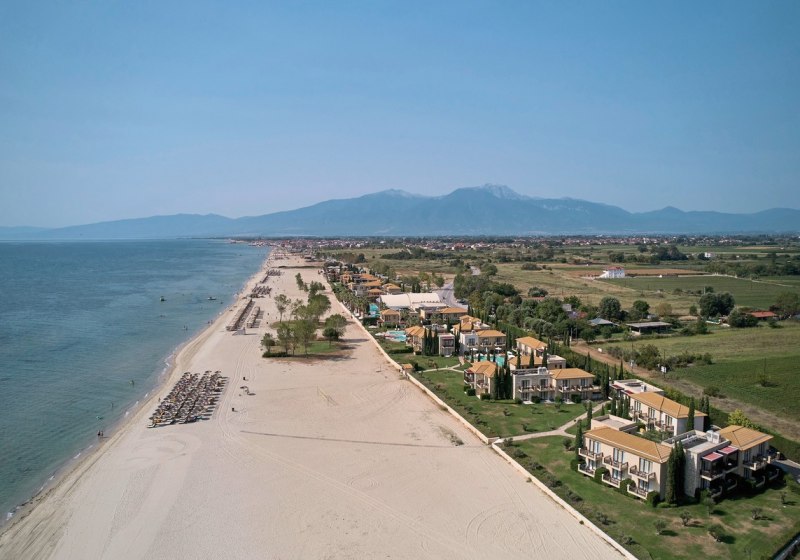 Direkt am flach abfallenden Sandstrand von Paralia Katerini empfängt Euch das Mediterranean Village Hotel & Spa als elegantes Fünf-Sterne-Resort mit ruhiger Lage am Ortsrand und Blick auf den Olymp. Ihr wohnt in einer weitläufigen Anlage mit Gärten, Außenterrassen und Pools. WLAN ist in der gesamten Anlage kostenfrei, die Rezeption arbeitet rund um die Uhr, und mehrsprachiger Service sorgt für reibungslose Abläufe.