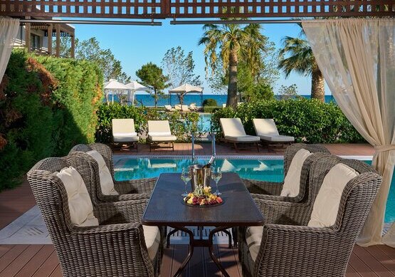 - Pool & Terrassen: Außenpools mit Sonnenterrassen schaffen großzügige Freiräume.