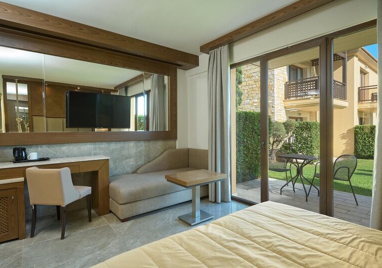 Weitere Ausstattungen wie Safe, Telefon, Minikühlschrank oder Kühlschrank sowie Kaffee- und Teezubereiter inklusive Wasserkocher erleichtern den Alltag. Familienzimmer, Schlafsofa und Kinderbettoptionen stehen bereit. Insgesamt umfasst die Anlage 176 Nichtraucherzimmer, darunter 10 Suiten und 2 Villen/Häuser. Highlight: Ausgewählte Zimmer mit seitlichem Meerblick verbinden Privatsphäre mit Küstenszenerie.