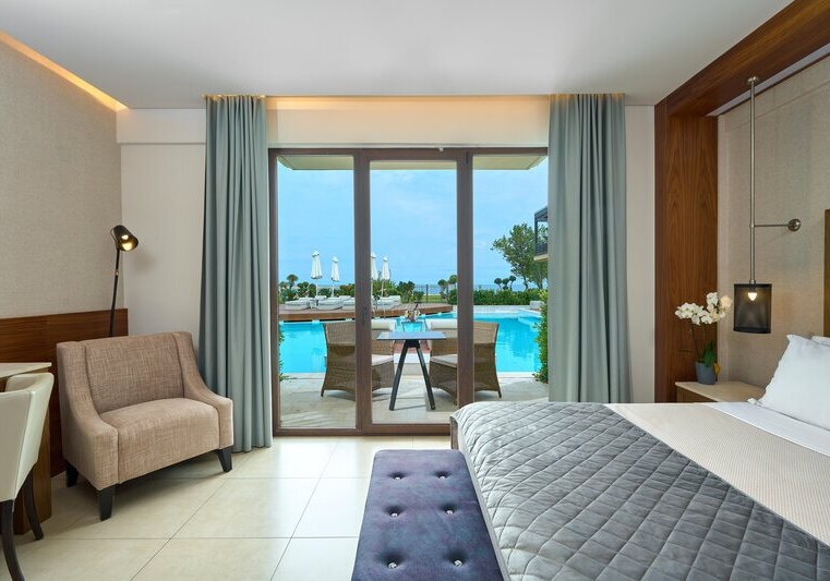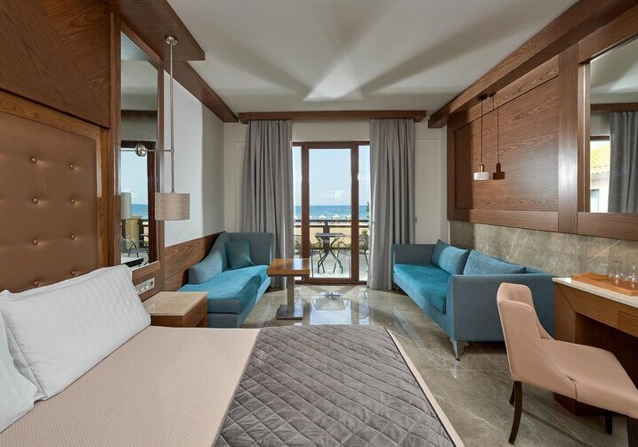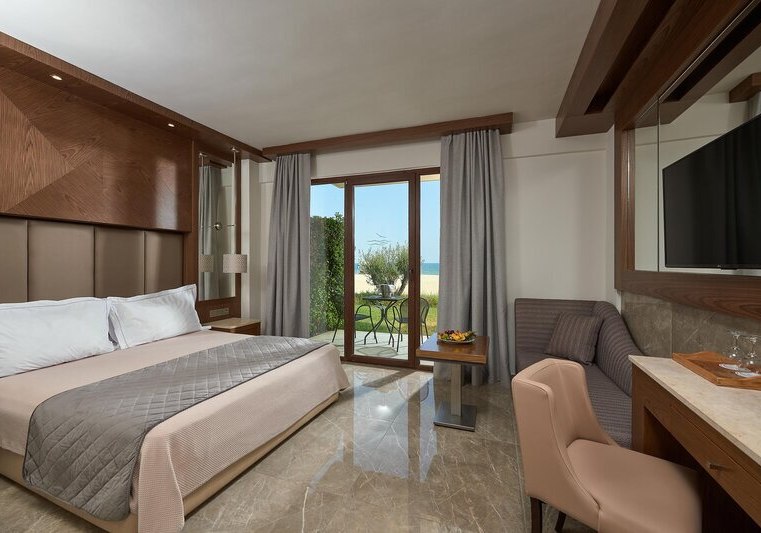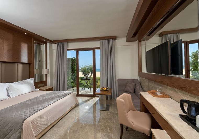 Familien freuen sich über Kinderpool, Spielplatz und die Option, dass Kinder bis 4 Jahre kostenfrei übernachten. Strandurlauber finden Sonnenliegen und Schirme an Pool und Strand, optional Strandpavillons. Wellnessreisende nutzen Spa, Sauna und Hallenbad (jeweils ab 16 Jahren). Kulinarisch erwarten Euch ein Hauptrestaurant, mehrere À-la-carte-Optionen sowie Bar und Poolbar. Highlight: Direkte Strandlage mit flach abfallendem Sand und Blick auf den Olymp.