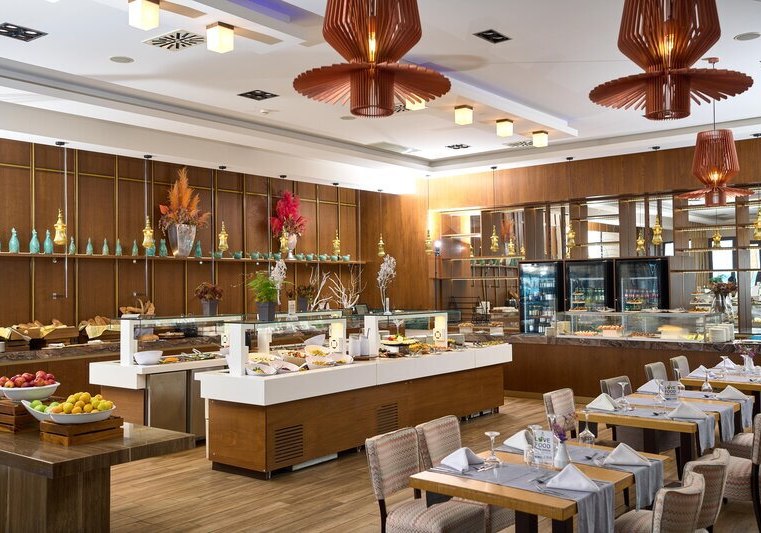 Im Hauptrestaurant startet Ihr mit Frühstück und setzt den Tag mit Abendessen fort; Halbpension ist verfügbar. Mehrere À-la-carte-Restaurants erweitern die Auswahl. Die Küche deckt vegetarische und Bio-Optionen ab, bietet Diätgerichte sowie Kindermenüs. Ein Begrüßungsgetränk stimmt Euch bei Ankunft auf den Aufenthalt ein.