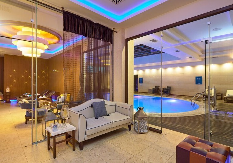Der Spa-Bereich ist Gästen ab 16 Jahren vorbehalten. Hier entspannt Ihr im Hallenbad oder in der Sauna, das Hamam ist gegen Gebühr buchbar. Das Angebot wird durch Massagen und Wellnessanwendungen ergänzt, darunter Gesichtsbehandlungen, Körperpeelings und Anti-Aging-Programme.