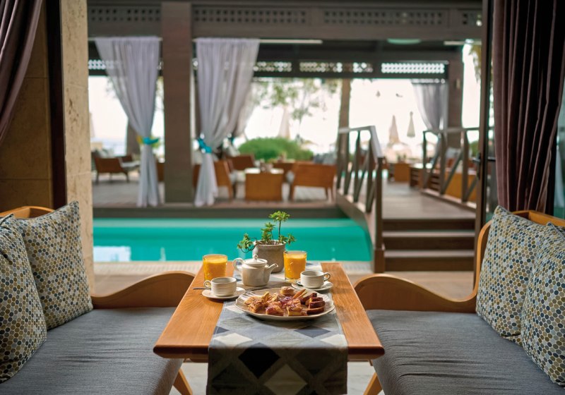 Die Anlage ist weitläufig angelegt und verbindet Gartenflächen mit Sonnenterrassen und Außenpools. Am Pool und Strand warten Liegen und Schirme; Strandpavillons sind buchbar. WLAN nutzt Ihr im gesamten Resort kostenfrei. Die Rezeption ist 24 Stunden besetzt, Concierge, Tour-Desk und Pagen-Service vereinfachen Planung und Transfers.