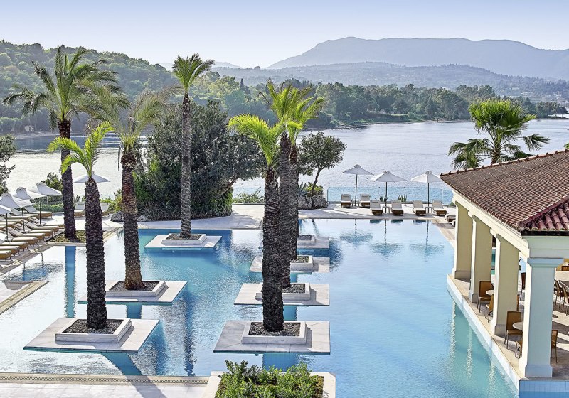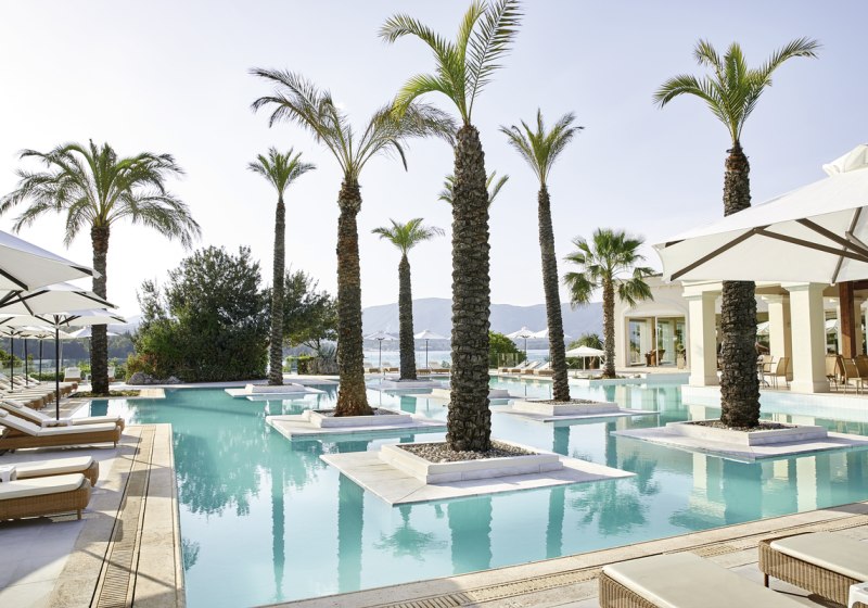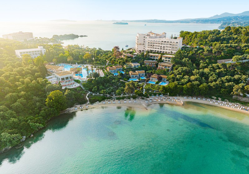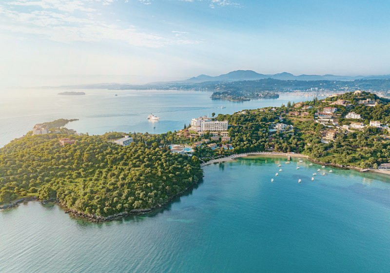 Die Lage auf der Kommeno-Halbinsel mit Blick auf Korfu-Stadt, die Auswahl an À-la-carte-Restaurants und das kompakte Spa formen ein stimmiges Gesamtpaket. Mit reservierbarem Shuttle erreicht Ihr die Stadt, ohne auf Strandnähe zu verzichten im Urlaub.
