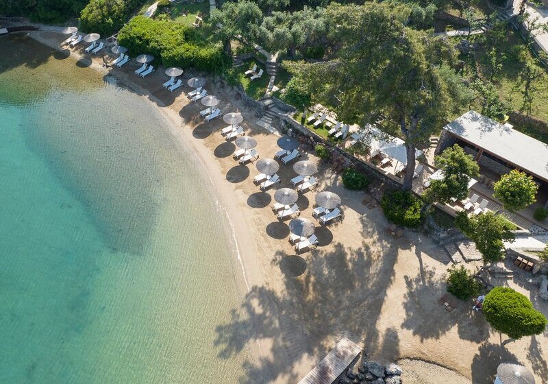 Grecotel Eva Palace vereint eine geschützte Badebucht, Meerwasserpool und durchdachte Services mit klarer Kulinarik und ruhiger Unterhaltung. Familien profitieren von Grecoland und Babysitting auf Anfrage; Aktivreisende strukturieren ihren Tag zwischen Fitness, Yoga und Wassersport.