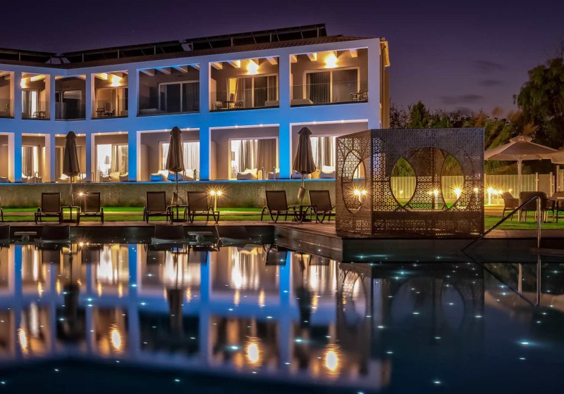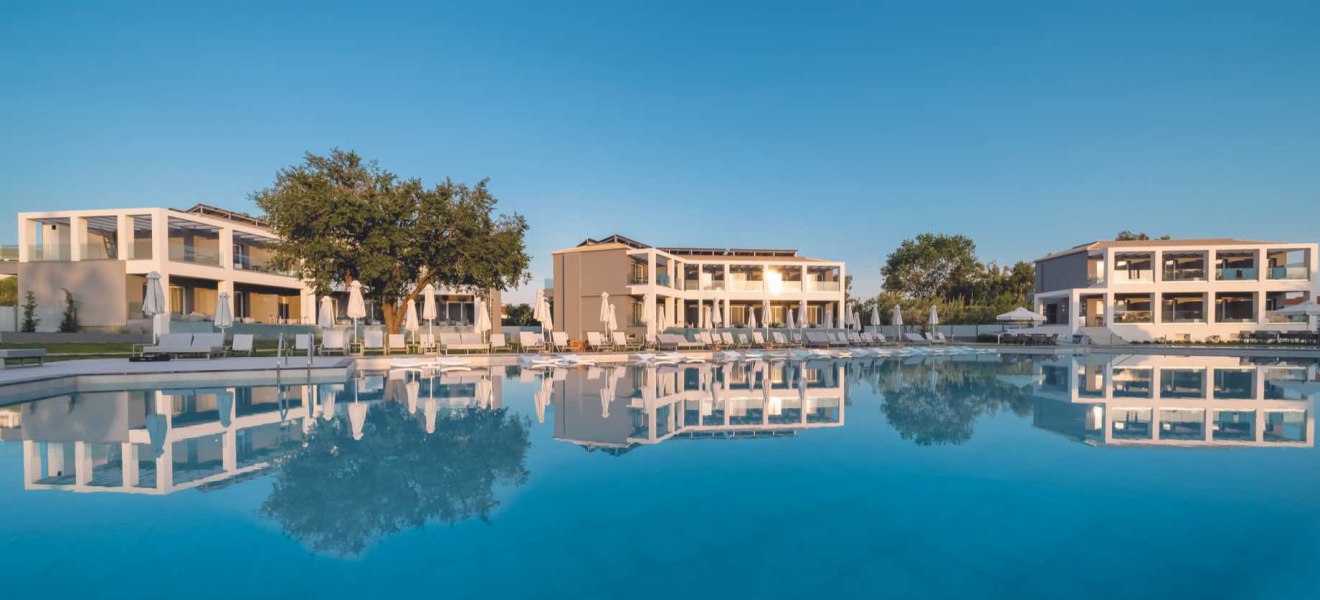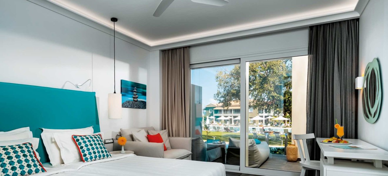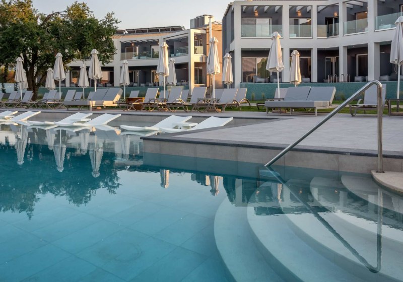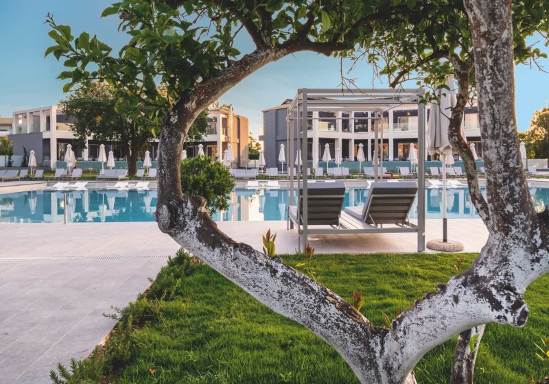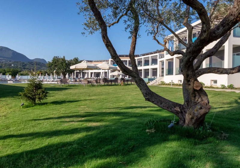 Im Vissalo by Acharavi Beach wohnt Ihr in einem modernen Strandrefugium, das Euch mit direktem Zugang zum Sand‑/Kiesstrand von Acharavi empfängt. Der Check‑in erfolgt im benachbarten Acharavi Beach Hotel, dessen Einrichtungen Ihr zusätzlich nutzt. So verbindet Ihr die intime Atmosphäre einer eigenständigen Anlage mit den Angeboten eines grösseren Resorts. Die Wege sind kurz, die Abläufe klar, der Blick geht über Gartenlounge und Poolbereich Richtung Meer.