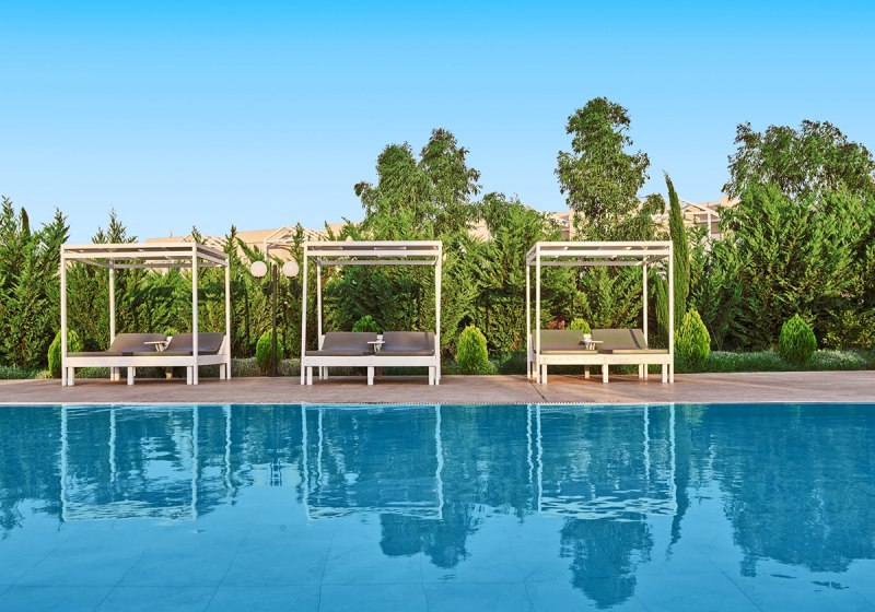 • Poolkomfort: Liegen und Schirme sorgen für planbare Erholung am Wasser.