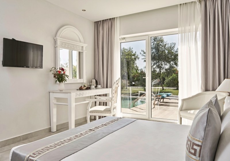 Sandy Villas Resort steht für ruhige Strandtage an Korfus Südwestküste, unmittelbare Nachbarschaft zu einem Natura-Schutzgebiet und einen erwachsenen Rahmen ab 16 Jahren. Das Zusammenspiel mit dem Schwesterhotel Sandy Beach erweitert Gastronomie und Services, ohne die ruhige Linie zu verlassen.