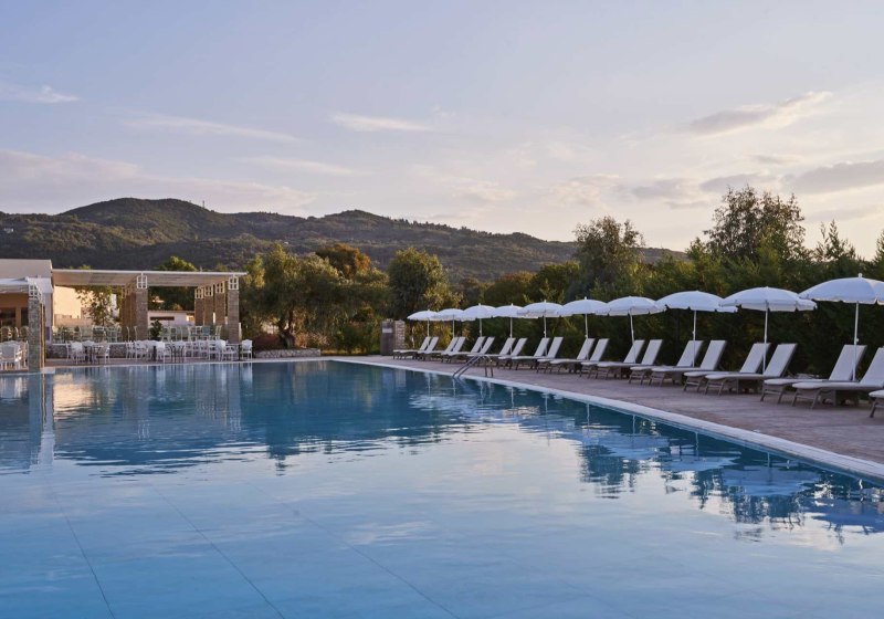 Sandy Villas Resort vereint Rückzug und Anbindung in einer erwachsenen Umgebung ab 16 Jahren. Die Anlage liegt an der Südwestküste von Korfu, unmittelbar an ein Natura-Schutzgebiet grenzend und nahe Agios Georgios. Der Charakter ist ruhig, die Wege sind klar strukturiert, die Gemeinschaftsbereiche wirken geordnet. WLAN begleitet Euch durch die gesamte Anlage, Sonnenliegen und Schirme warten an Pool und Strand. Ihr nutzt Services von Sandy Villas Resort und dem Schwesterhotel Sandy Beach nahtlos, inklusive Rezeption im Schwesterhotel.