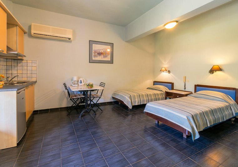 Ihr wählt zwischen Studios, Appartements mit zwei oder drei Schlafzimmern und Suiten mit Meerblick. Fast alle bieten Balkon oder Terrasse, einige Studios kommen ohne Balkon. Tiled Floors, Sat-TV, Kitchenette und Wasserkocher sorgen für funktionalen Komfort. Highlight: Großzügige Appartements für Familien oder Freundeskreise.