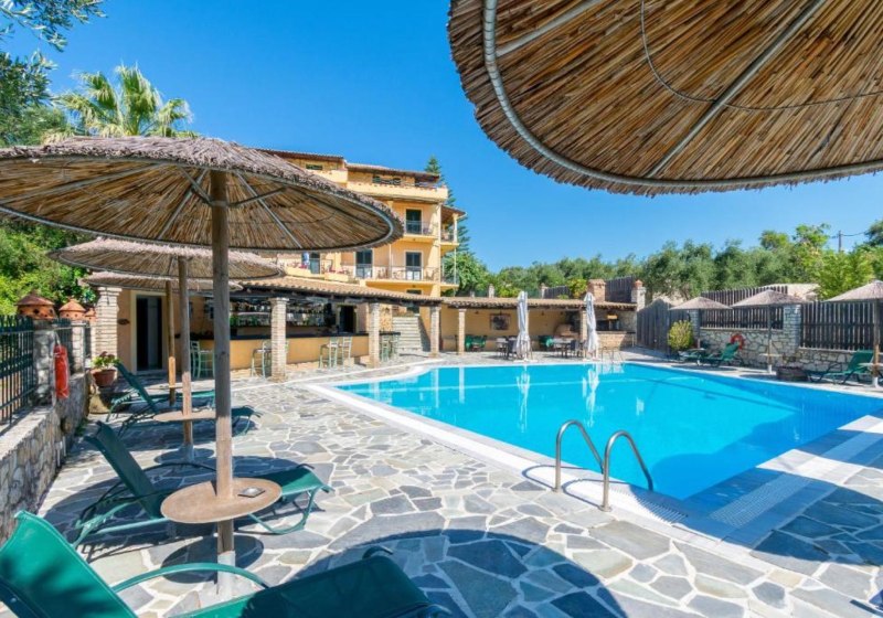 Villa Yannis empfängt Euch in Dassia auf Korfu mit einem überschaubaren Ensemble aus Haupt- und Nebengebäude und 16 Wohneinheiten. Der Stil ist entspannt, mit viel Platz im Garten und einem Außenpool als Mittelpunkt. Ihr checkt ab 14:00 ein, genießt kostenlose Parkplätze und WLAN sowie die kurzen Wege im Haus.