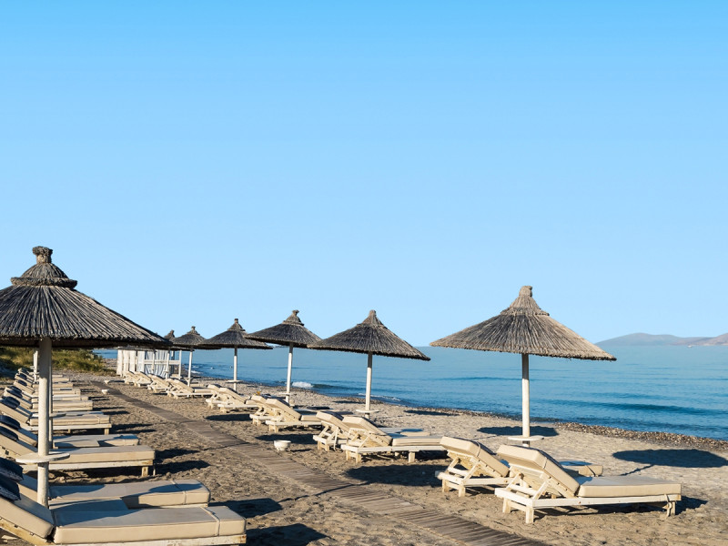 • Strandzugang: Strand über Küstenstraße erreichbar, Strandliegen inklusive Schirme.