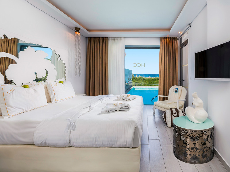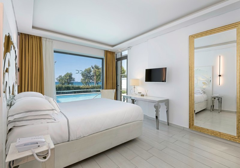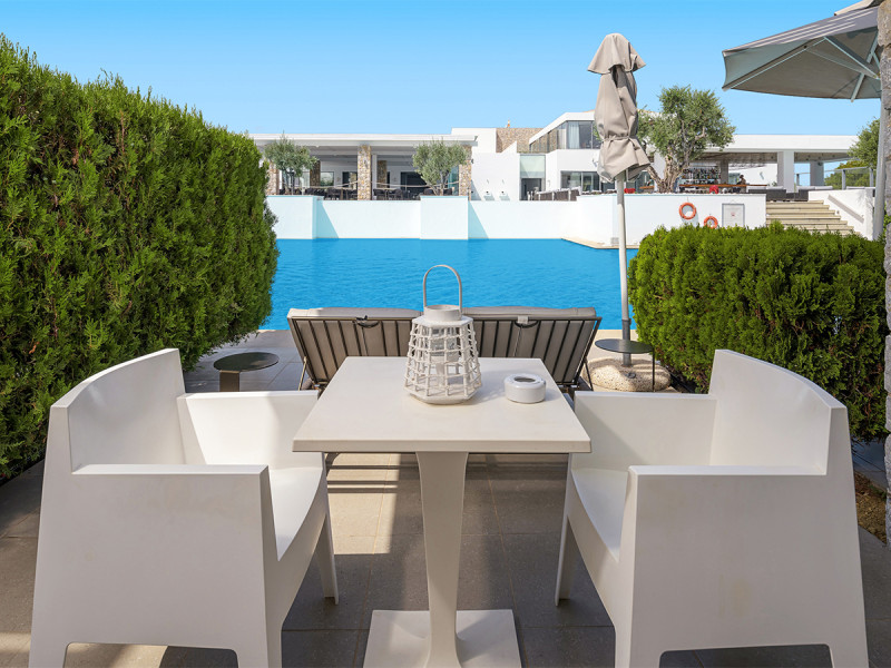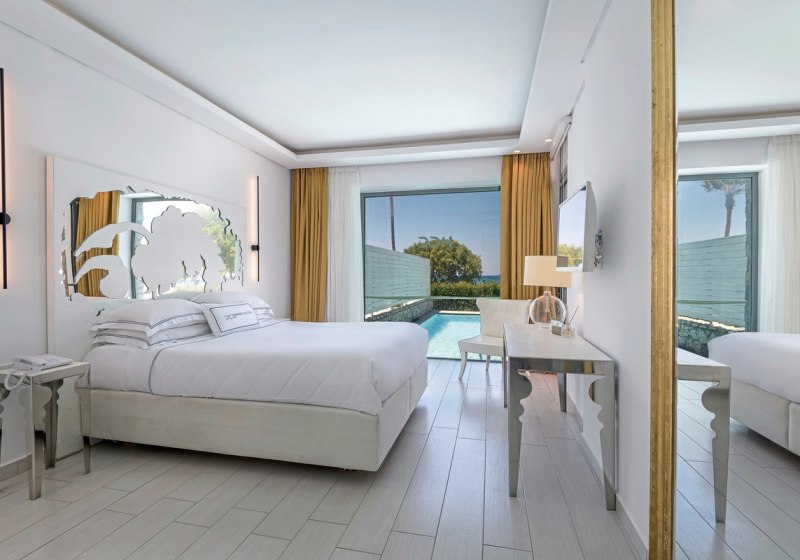 • Raumvarianten: Maisonette, Swim-up und Suite mit privatem Pool.