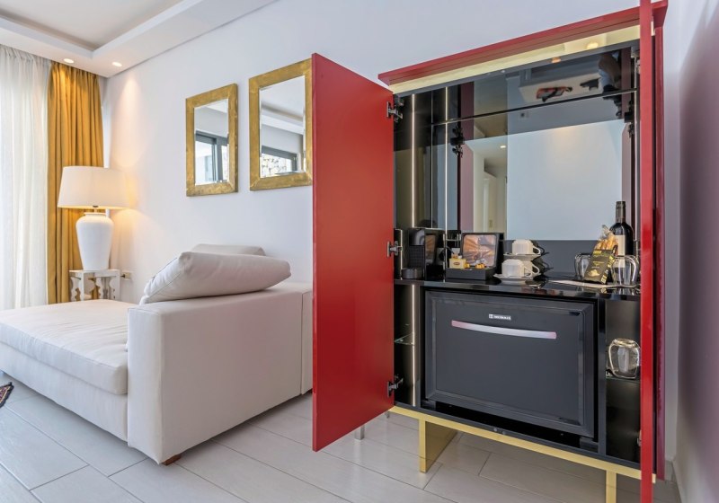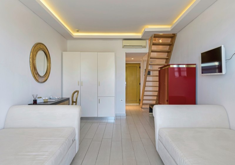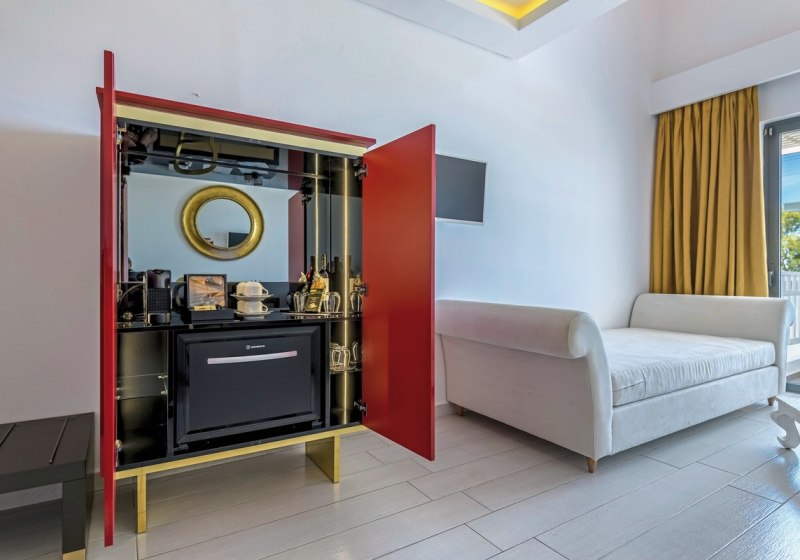 • Klimaanlage • Kühlschrank • Haartrockner • Minibar (gegen Gebühr) • Safe (kostenfrei) • Fernseher • WiFi (kostenfrei) • Balkon oder Terrasse • Bergblick • Poolblick • Balkon (je nach Zimmerkategorie) • Sitzecke (je nach Zimmerkategorie) • Meerblick (je nach Zimmerkategorie) • Schlafsofa • Kaffee-/Teezubereiter • Terrasse