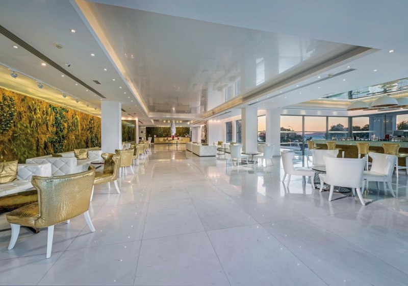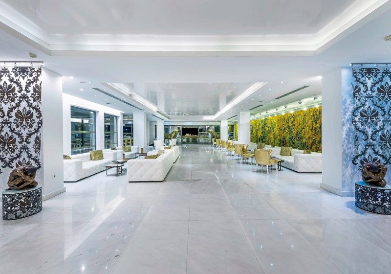 Die Infrastruktur ist umfassend: 24-Stunden-Rezeption, Lounge, Aufzug, Minimarkt, Souvenirshop und Boutique. WLAN steht in der gesamten Anlage bereit. Draußen breitet sich die Gartenanlage mit großer Sonnenterrasse aus. Am rund 2000-Quadratmeter-Außenpool findet Ihr Liegen und Schirme, ebenso am Strand gegenüber.