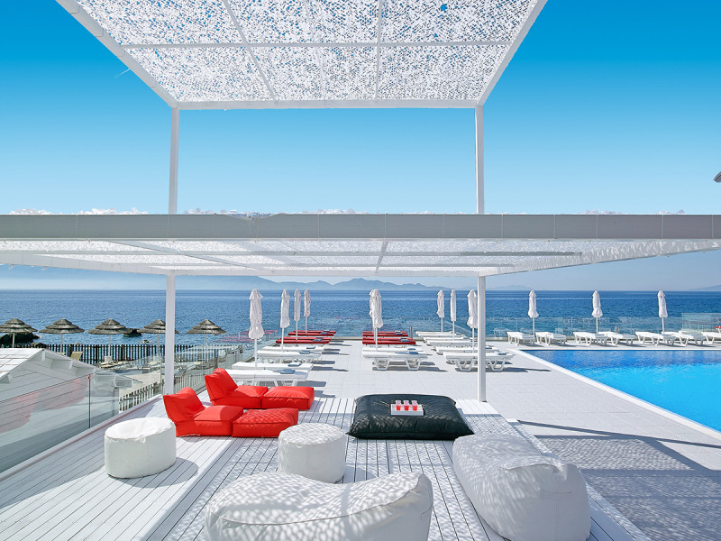 Dimitra Beach Hotel & Suites verbindet Strandlage in Agios Fokas mit drei Außenpools, gut strukturierten Familienbereichen und ruhigen Adults-Zonen. Küche, Zimmer und Service erreichen in den Bewertungen Spitzenwerte; Abende klingen mit Livemusik, Themen- und DJ-Programmen aus. Die Wege bleiben kurz, die Angebote klar.