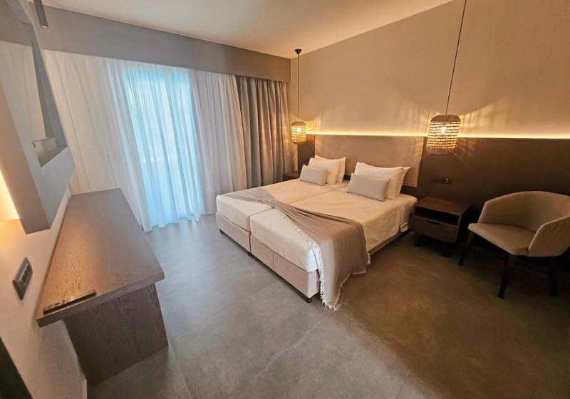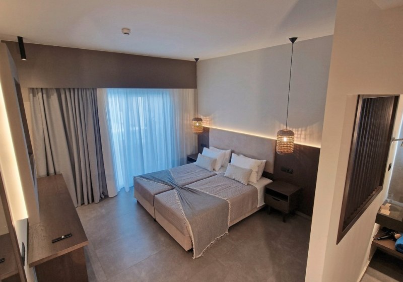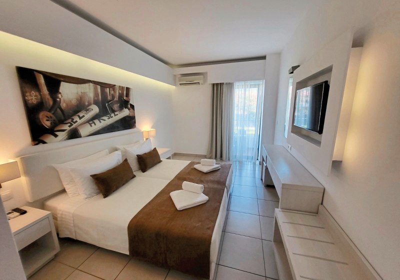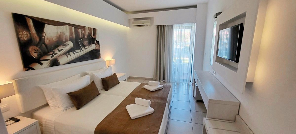 • Klimaanlage • Balkon (je nach Zimmerkategorie) • Kühlschrank • Haartrockner • Minibar • Safe • Raucherzimmer • Fernseher (Sat-TV) • rollstuhlgerechte Zimmer (auf Anfrage) • WiFi (kostenfrei) • Meerblick (je nach Zimmerkategorie: seitlich) • Kaffee-/Teezubereiter • Terrasse