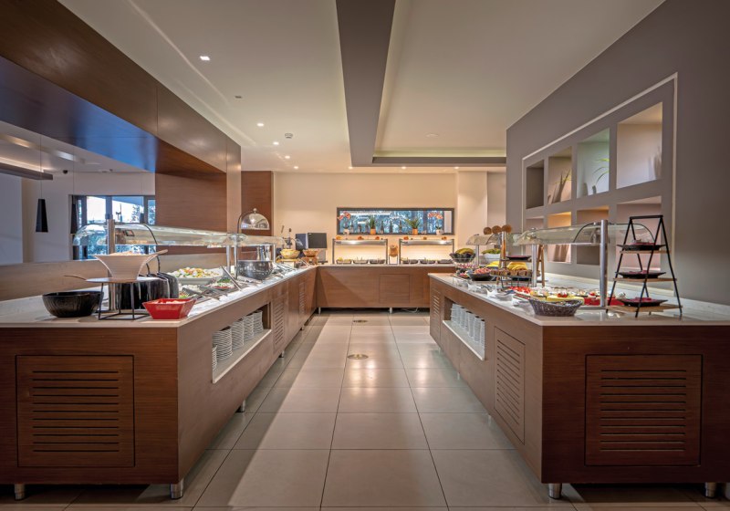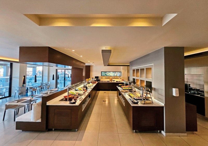 Im Restaurant startet Ihr mit Frühstück in den Tag oder wählt Halbpension mit Abendessen. Live-Kochen setzt Akzente, dazu stehen Snacks für den Hunger zwischendurch bereit. Vegetarische Kost und Diätgerichte sind als Optionen vorgesehen, ebenso spezielle Angebote – passend, wenn Ihr Eure Verpflegung klar strukturieren wollt.