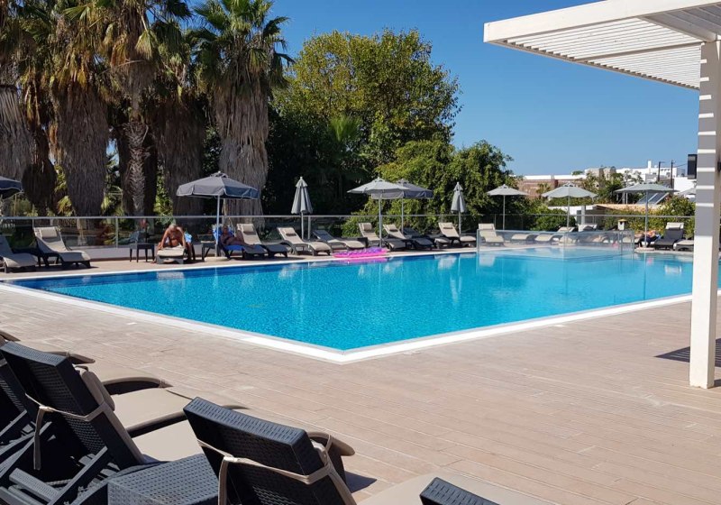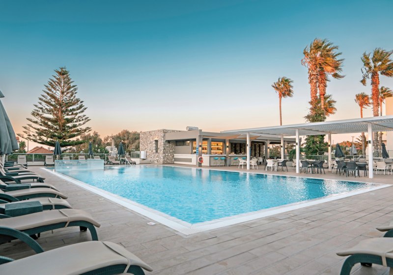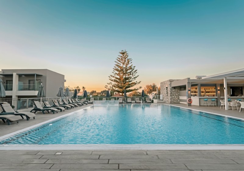 Cosmopolitan vereint Strandnähe, kurze Wege nach Kos-Stadt und eine sachlich ausgestattete Hotelbasis. Pool und Kinderpool, Tennisplatz, WLAN im gesamten Haus sowie Restaurant und Poolbar schaffen klare Strukturen für entspannte Tage im Urlaub.