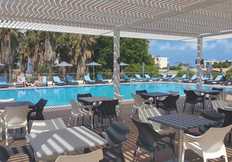Die Infrastruktur ist auf kurze Wege und klare Services angelegt: Rezeption, Aufzüge, WLAN im gesamten Hotel und Internetecke erleichtern den Alltag. Am Poolbereich warten Liegen und Schirme, Poolhandtücher liegen bereit. Ein Kinderpool grenzt den Familienbereich ab. Bibliothek, TV-Raum und Garten schaffen ruhige Rückzugsorte.