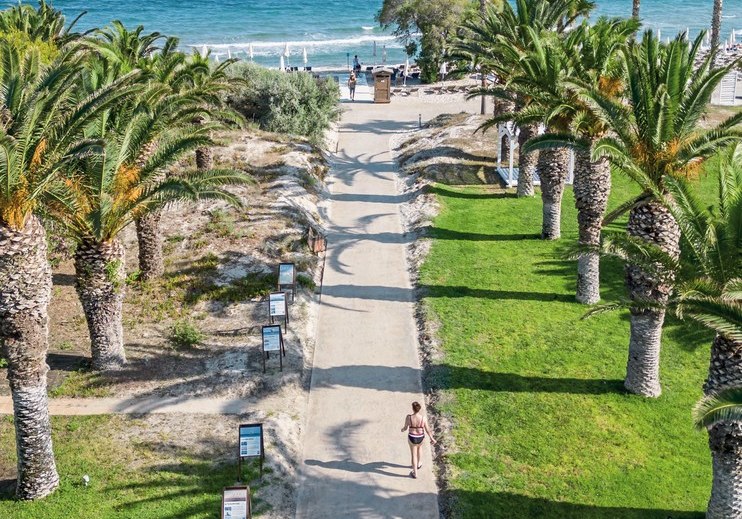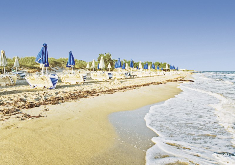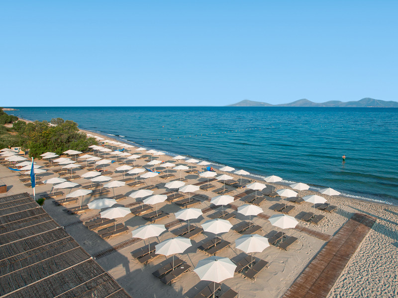 • Strandkomfort: Liegen und Schirme stehen am Strand bereit – kurzer Weg.