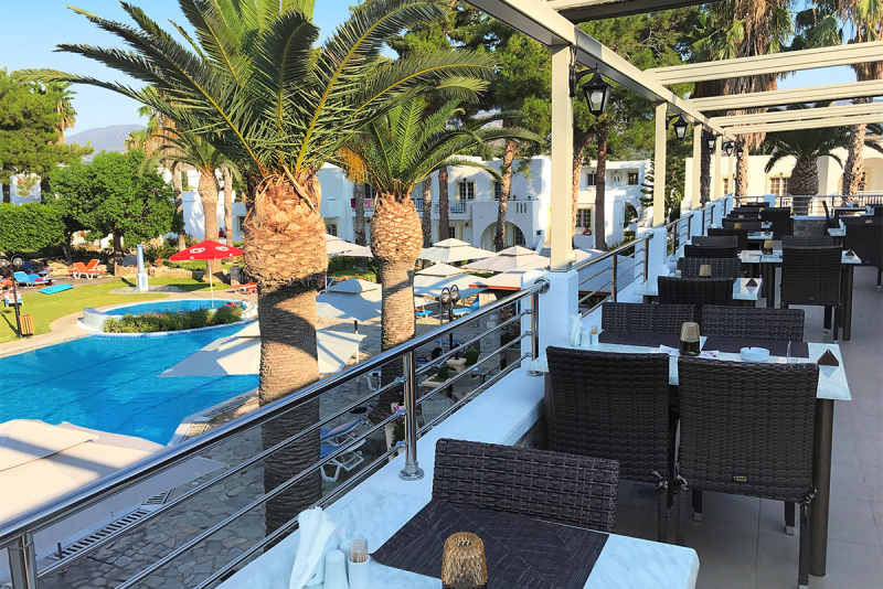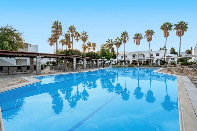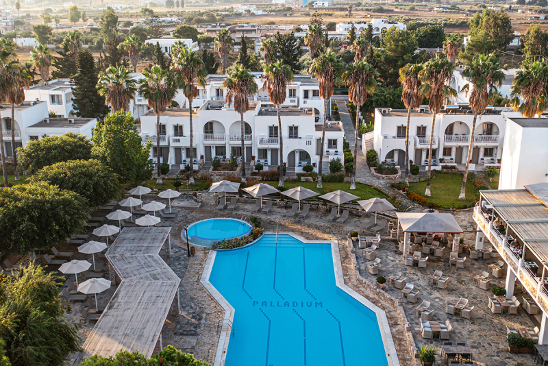 Das Palladium Hotel liegt an einer ruhigen Lage und nur 800 m vom feinen Sandstrand von Marmari entfernt. Das Hotel ist gut angebunden; der Flughafen ist 12 km weit weg und der Ort Kos mit seinen Einkaufsmöglichkeiten, Restaurants und Bars ist 15 km entfernt.